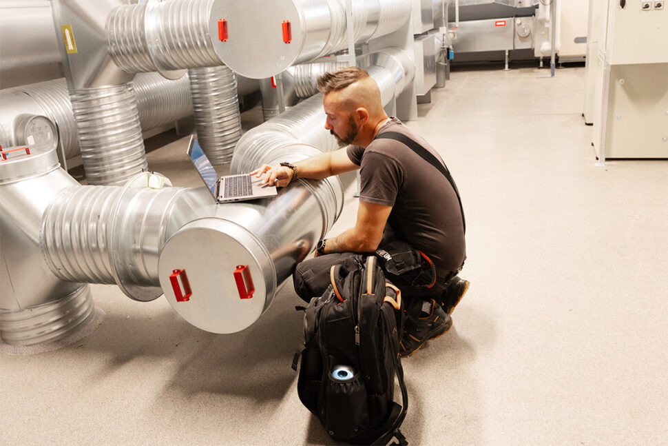 På Linkedin skildrar Ola Backlund sin vardag som drifttekniker – något helt annat än att sitta framför datorn i ett kontrollrum. VVS Forum hängde honom i hasorna när han felsökte krånglande ventilation och upptäckte vatten i förskolans krypgrund.