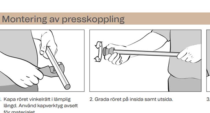 Svar: Jag tittade på en monteringsanvisningen på en presskoppling och jag skulle bli förvånad om det skiljer sig med andra tillverkare, men det ska jag låta vara osagt.