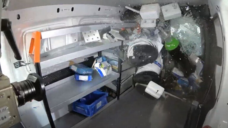 Ett extra golv i hantverkarbilar Ă€r en skaderisk för föraren vid pĂ„körningar bakifrĂ„n. âGolvet kan bli som en kniv som skĂ€r in i kupĂ©nâ, varnar Magnus Persson, arbetsmiljöexpert pĂ„ Installatörsföretagen.