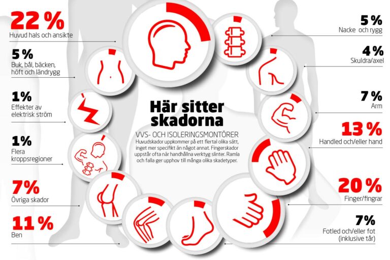 Elektriker, VVS-montörer och övriga yrken inom byggbranschen Àr bland de mest skadedrabbade pÄ den svenska arbetsmarknaden, bÄde vad gÀller arbetsolyckor och arbetssjukdomar. Det visar en sammanstÀllning som Afa FörsÀkring har gjort.