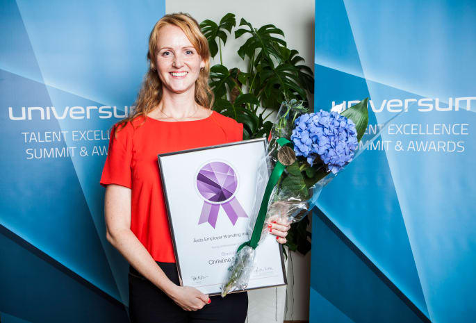 Christine Nilsson, HR-strateg för en stor svensk installationskoncern, belönas med titeln "Ă rets employer branding managerâ av Universum.