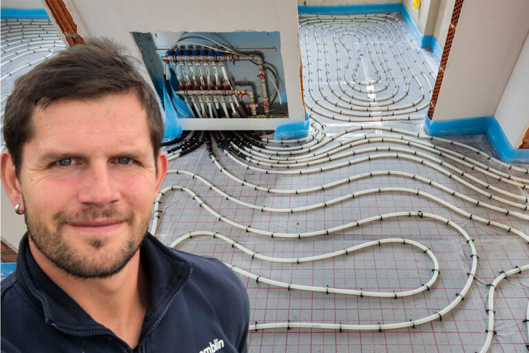 VVS-montören Gustav Theander Gransten Àr mÄttligt förtjust i golvvÀrmestyrning. Han anser att det inte anvÀnds, medför problem och att han ofta fÄr Äka och fixa igensatta stift.