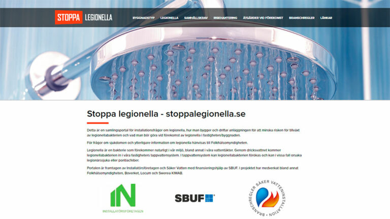 Legionella Àr bÄde ett hÀlsohot för allmÀnheten och ett arbetsmiljöproblem för installatörer. Nu öppnar webbportalen stoppalegionella.se.